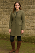 Ladies Magee Luxury Tweed Jacket. Magee Donegal Tweed Coat in green herringbone with pale blue check.