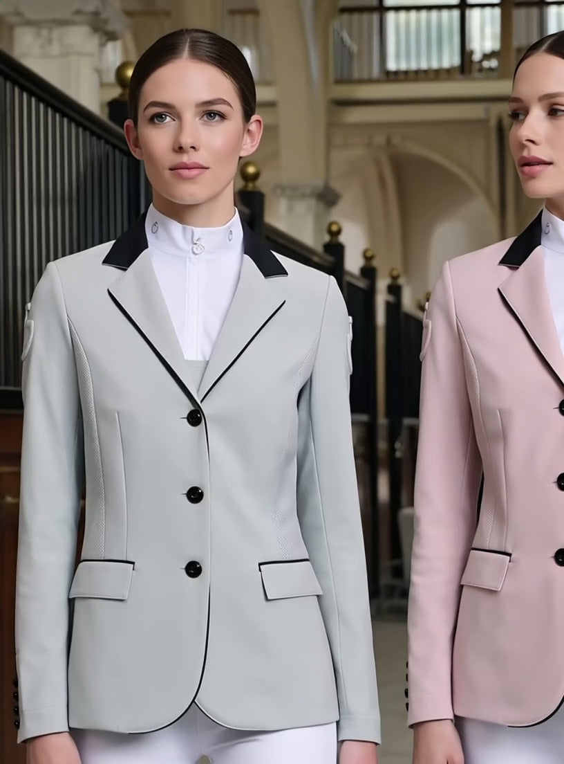 Cavalleria Toscana Perforated Ladies GP Competition Jacket. Featuring the same classic and timeless design as our CT GP riding jacket, this design features additional breathability from the perforated fabric, making it the ideal choice for competition in the Summer and/ or in warmer climates. With a chic and stylish silhouette in fun new seasonal colour options.
