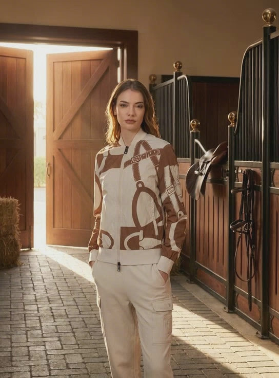 Vestrum New Orleans Jacket SS26. This chic statement Vestrum riding jacket will help elevate your style to the next level whether you're in the saddle or out in the streets! Featuring an iconic equestrian print, in a flattering bomber cut.